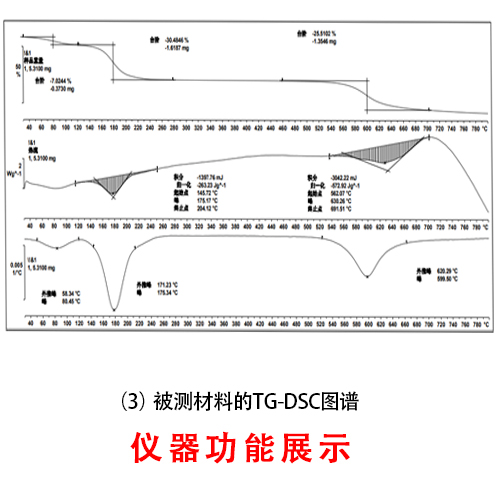 TG:测定固体、液体、粉末、薄膜和纤维的热稳定性、分解、氧化还原、吸附解吸、游离水与结晶水含量、成分比例计算等